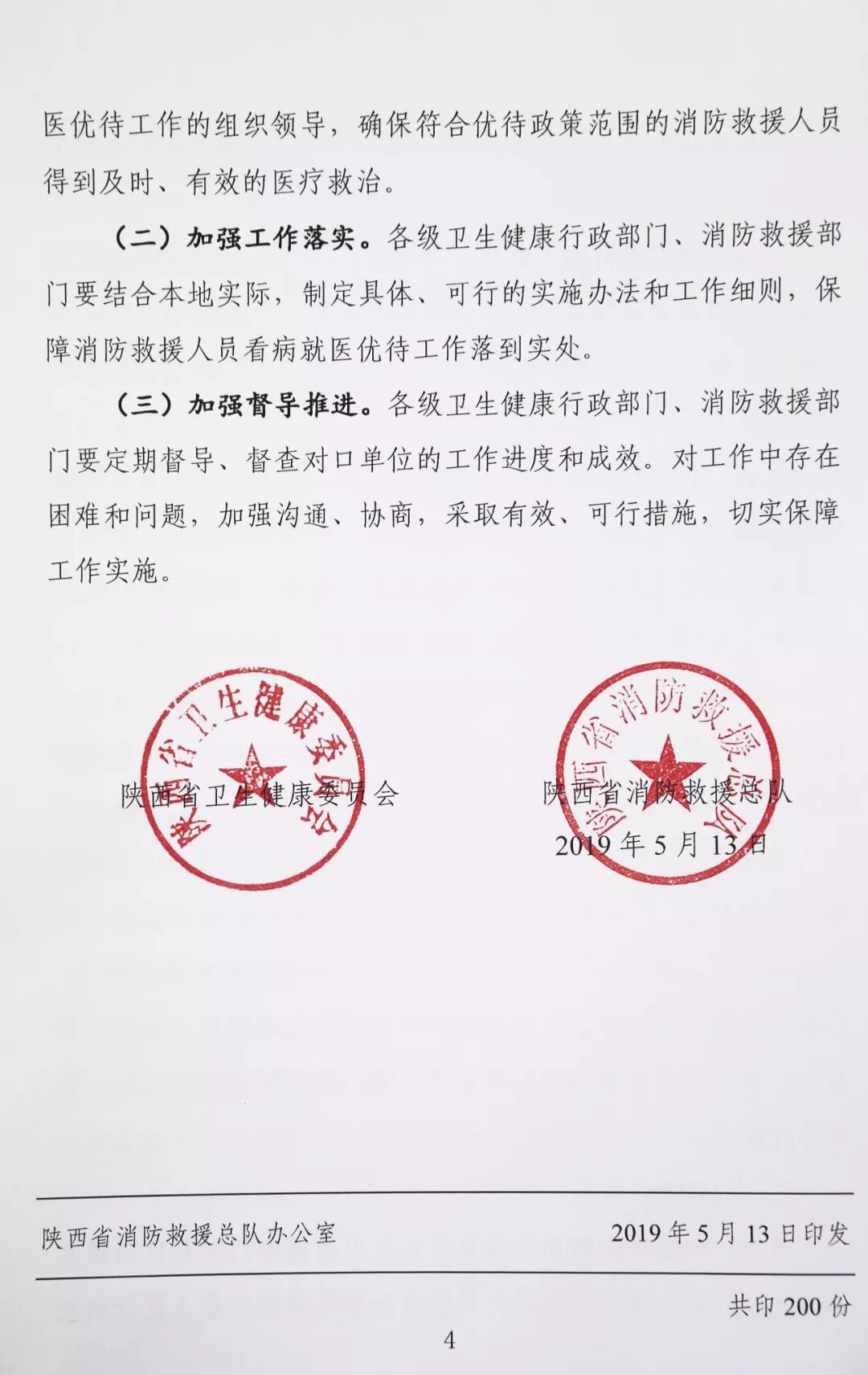 近日,陕西省消防救援总队、陕西省卫生健康委员会联合印发《关于加强消防救援人员看病就医优待权益工作的通知》,明确了全省消防救援人员的医疗优待政策。